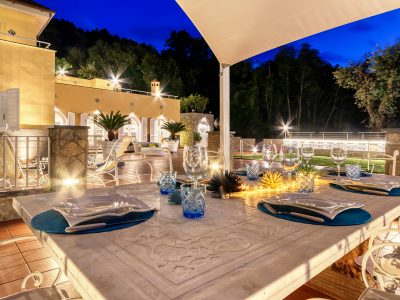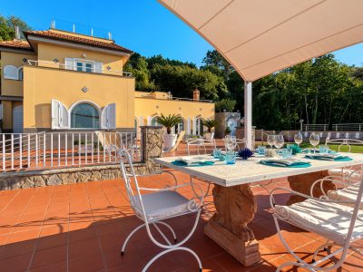 Take a look at the pictures of Villa le Tore. Admire its elegant spaces, bedrooms, pool and panoramic terrace with sea view.