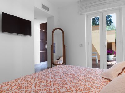 На втором этаже находятся три комнаты с двуспальными кроватями и одна комната с двумя односпальными кроватями. Каждая из комнат снабжена отдельной ванной с туалетом и душем. На первом этаже так же есть спальня с двуспальной кроватью и туалетом снаружи. Однаизкомнатоборудованадляинвалидов.